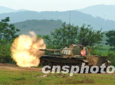 圖為坦克實(shí)彈射擊發(fā)發(fā)命中目標(biāo)。