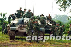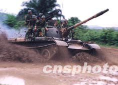 八月的海南五指山區(qū)某裝甲部隊(duì)頂著高溫烈日艱苦訓(xùn)練。作者:蔣聚榮
