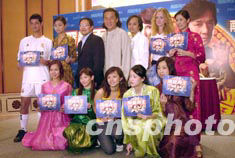 電影《飛龍?jiān)偕?月6日在香港舉行新聞發(fā)布會(huì)。大會(huì)別出心栽安排一眾少女穿上代表各地的服飾,以及穿上“皇馬”球衣的青年,寓意代表世界各地亦將同步放映《飛龍?jiān)偕。中新社記?鄧慶樂(lè)