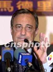 “皇馬”主席佩雷斯7日在香港記者會上,就球員6日晚未能參加在大球場的操練,公開道歉,他解釋問題出于缺乏溝通。中新社記者:鄧慶樂