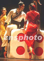 中國中央芭蕾舞團(tuán)新版《大紅燈籠高高掛》夢幻舞中的女學(xué)生熱戀京劇武生趙子龍的夢幻雙人舞,音樂和編舞更具浪漫情結(jié)。中新社記者:賈國榮