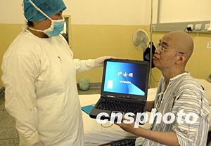 在北京地壇醫(yī)院住院治療的全國(guó)最后一批SARS患者下周即將全部康復(fù)出院。4月7日發(fā)病,17日住院的北京“北方交通大學(xué)”計(jì)算機(jī)專業(yè)19歲學(xué)生孫崢,歷經(jīng)四家醫(yī)院一百多天的搶救治療終于從死亡的邊緣回到了人間。就要離開(kāi)地壇醫(yī)院的孫崢制作了幻燈片“護(hù)士頌”,表達(dá)對(duì)白衣天使的衷心感謝。中新社記者:任晨鳴