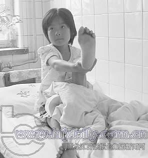 陳子薇今年10歲,在齊齊哈爾新江小學(xué)上學(xué),開(kāi)學(xué)后上四年級(jí)。記者到陳子薇病房的時(shí)候,她正在睡覺(jué),她媽媽告訴記者,因?yàn)殡y受,陳子薇自從中毒以來(lái)一直沒(méi)怎么好好睡覺(jué)。4日那天,她爸爸陳榮喜幫人家卸土,她就一直站在旁邊看,看完之后也沒(méi)什么感覺(jué),第二天早晨,她的眼睛就疼,眼球和眼皮都發(fā)紅。而陳子薇的爸爸陳榮喜也是這次芥子毒氣的受害者之一,并且病情有所發(fā)展,現(xiàn)在就和陳子薇住在一個(gè)病房里。