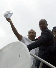 與泰勒同機(jī)抵達(dá)阿布加的還有尼日利亞前軍事領(lǐng)袖、也是利比里亞危機(jī)的首席談判代表阿布巴卡,以及西非經(jīng)濟(jì)共同體執(zhí)行秘書(shū)桑巴斯。