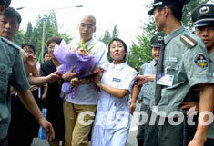 中新網(wǎng)北京8月16日電(記者吳慶才)今天,十九歲的北方交大學(xué)生孫崢緊緊地?fù)肀е暮亲o(hù)他的“干媽”——地壇醫(yī)院護(hù)士長劉曉冬。孫崢和另一名SARS患者盧志艷今天成了中國最后兩名走出病房的SARS康復(fù)者。至此,中國抗擊SARS的斗爭取得了全面的勝利。