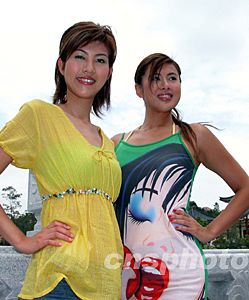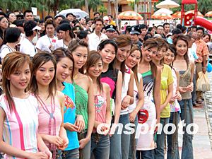 八月十七日,十二位二00三年度“準(zhǔn)香港小姐”在廣東新會(huì)溫泉谷進(jìn)行親善訪問(wèn)活動(dòng),當(dāng)?shù)孛癖娂娂娳s來(lái),一睹她們的靚麗風(fēng)采。中新社記者:劉衛(wèi)勇