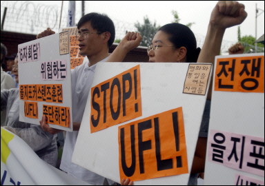 這一演習(xí)立即遭到了部分韓國(guó)民眾的抗議,這些民眾高舉著用韓文和英文書(shū)寫的“停止舉行乙焦演習(xí)”的醒目標(biāo)語(yǔ)聚集到駐韓美軍總部所在地--韓國(guó)漢城龍山美軍基地外,高呼立即停止軍演的口號(hào)。(徐冰川/聞新芳)