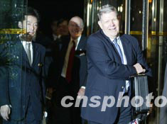 參加朝核問題六方會談的美國代表團一行二十五日晚抵達下榻的北京國際俱樂部。中新社記者:毛建軍