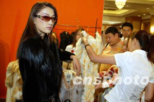 東北虎“巴黎之約,炫彩時尚”2003--2004國際皮草服飾最新流行趨勢發(fā)布會二十八日在哈爾濱舉行。中新社記者:毛建軍
