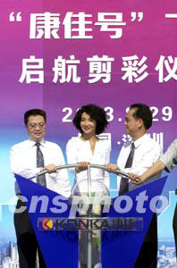 圖:張曼玉出席“康佳號”客機(jī)啟航儀式