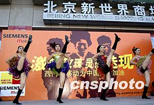 西門子移動(dòng)電話公司三十日舉行“萬(wàn)人簽名為中國(guó)女足加油”活動(dòng),足球?qū)氊惥实奈璧副硌輰⒒顒?dòng)推向高潮。中新社記者:趙振清