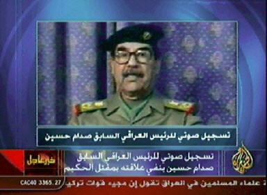 錄音講話說:“這些指責(zé)(薩達(dá)姆)的人應(yīng)該向伊拉克人民闡述他們進行這種指責(zé)的理由以及他們所知道的一切,以免混淆視聽”。