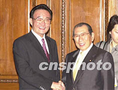 全國人大常委會委員長吳邦國五日上午在東京與日本眾議院議長綿貫民輔就雙方關(guān)心的問題進行了坦率深入的交談。作者:王健