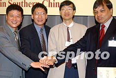 香港大學(xué)醫(yī)學(xué)院,九月五日在香港舉行“ 動物SARS病樣毒分離及鑒定”研究報告會,報告指出“活畜零售可能是傳播SARS病毒的主要途徑”。圖為香港大學(xué)醫(yī)學(xué)院微生物學(xué)系四位知名教授在會上。中新社記者:錢興強