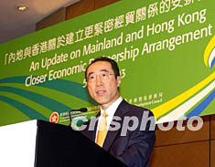 圖:唐英年出席更緊密經(jīng)貿(mào)關系安排交流會