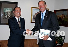 中國駐紐約總領(lǐng)事劉碧偉(左)到任剛好一個月。九月八日下午,他前往州長辦公室拜會了紐約州長帕塔基。劉碧偉表示,歡迎柏塔基州長在方便的時候訪華。中新社記者:陳建