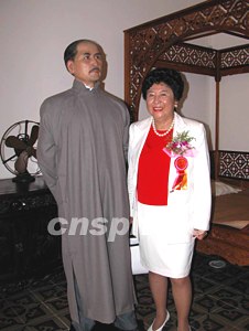 孫中山大元帥府紀念館全面開放暨門樓修建落成典禮儀式,十日在廣州孫中山大元帥府舊址舉行,孫中山的孫女孫穗芳專程回穗?yún)⒓釉擁椈顒,并在館內與祖父的塑像合影留念。作者:劉衛(wèi)勇