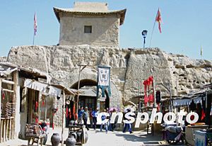 位于銀川西北四十公里處的華夏西部影視城因周星馳主演的電影《大話西游》而成為新興的旅游熱點(diǎn),電影大結(jié)局取景處的古城門成為游客津津樂道之地。中新社記者:廖文靜