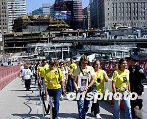 紐約十一日上午在世貿(mào)廢墟舉行“九一一”兩周年紀念儀式。中新社記者:趙海燕