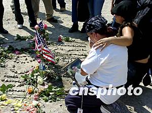 紐約十一日上午在世貿(mào)廢墟舉行“九一一”兩周年紀念儀式,數(shù)千紐約人走進世貿(mào)廢墟最底層悼念罹難者。中新社記者:趙海燕