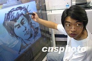 九月十二日開幕的中國北京國際科技產(chǎn)業(yè)博覽會上,聯(lián)想集團推出一種高科技大屏幕畫板,使人們遠離顏料污染。中新社記者:史利