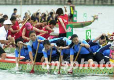 2003年亞太城市龍舟邀請賽決賽及小龍公開賽決賽十四日在澳門西彎人工湖舉行,澳門理工學(xué)院職業(yè)技能培訓(xùn)中心獲得男子總決賽冠軍。中新社記者:李剛