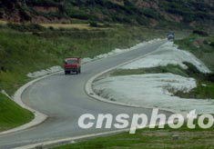 中國在著名觀光勝地四川省九寨溝新建的機場,即將在九月二十八日通航。暢通的機場高原公路兩邊采用薄膜養(yǎng)草術(shù)保護環(huán)境。中新社記者:賈國榮
