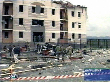 劇烈的爆炸震碎了聯(lián)邦安全局印古什分局大樓所有的窗戶玻璃,三層高的辦公樓受損嚴(yán)重,但并沒有倒下。俄塔社記者從現(xiàn)場報(bào)道說,爆炸發(fā)生的時(shí)候,大樓里有至少100人在辦公。美聯(lián)社記者在現(xiàn)場看到至少一名死者的尸體,這具尸體就在那些被炸翻的汽車?yán)。爆炸發(fā)生后,數(shù)十名警察迅速趕到,包圍了爆炸現(xiàn)場。