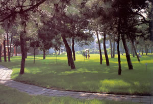 北戴河海濱背依翠黛的青山。壁立于海邊的東西聯(lián)峰山,海拔400米,蒼松翠柏,郁郁蔥蔥,清澗流水,幽徑曲折。這里山巒起伏,群山相互連貫,所以稱聯(lián)峰山。又因這座山形似蓮蓬,又稱蓮蓬山。沿山澗幽徑,攀上聯(lián)峰山,站在頂峰“望海亭”上,觀覽滄海,但見煙波浩渺,白浪層層,氣象萬千。