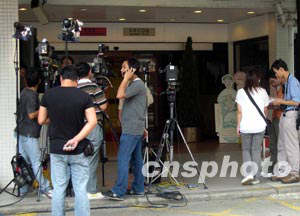 16日,香港一名34歲女病人在瑪嘉烈醫(yī)院留醫(yī),據(jù)初步測(cè)試顯示,在她體內(nèi)沒(méi)發(fā)現(xiàn)SARS病毒。圖為大批記者在醫(yī)院等待最新消息。作者:譚達(dá)明