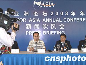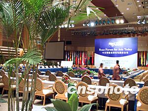 中遠集團投資建設的博鰲亞洲論壇永久會址——博鰲亞洲論壇國際會議中心,將于二十二日揭幕。該中心位于博鰲東嶼島,建筑面積為三萬七千平方米,共有大小十六個設施先進的會議廳,主會場可以容納二千五百人。這是即將在明天召開“今日博鰲亞洲論壇:回顧與展望圓桌會議”會場。中新社記者關(guān)向東攝