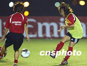 美國當(dāng)?shù)貢r(shí)間9月20日晚7點(diǎn),參加女足世界杯的中國女足在美國洛杉磯南部小城卡森體育場開賽前的最后一場熱身訓(xùn)練。圖為范運(yùn)杰在訓(xùn)練中突破射門。作者:劉占坤