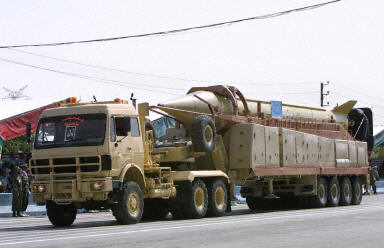 9月22日,在伊朗首都德黑蘭舉行的閱兵式上,一輛卡車運(yùn)載著該國最新研制的“流星-3型”中程彈道導(dǎo)彈。當(dāng)天,伊朗舉行活動(dòng)紀(jì)念兩伊戰(zhàn)爭爆發(fā)23周年,紀(jì)念活動(dòng)中展示了最新研制的“流星-3型”中程彈道導(dǎo)彈。該型導(dǎo)彈已經(jīng)于2003年7月裝備伊朗伊斯蘭革命衛(wèi)隊(duì)。伊朗一名高級官員當(dāng)天也表示,將減少與國際原子能機(jī)構(gòu)的合作。