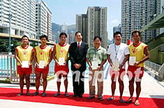 六名服務于香港摩士公園游泳池的救生員,曾在九月二十一日協(xié)助拯救在車禍中受傷的市民。康文署署理助理署長(康樂事務)張國基(中)二十六日頒發(fā)嘉許狀表揚參與救人的救生員。中新社圖