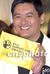 國際巨星周潤發(fā)9月26日在香港海港城Kiehl’s專門店出席《啟勵扶青會》慈善籌款活動啟動儀式。周潤發(fā)身為《啟勵扶青會》的贊助人,展示該會小旗。作者:鄧慶樂