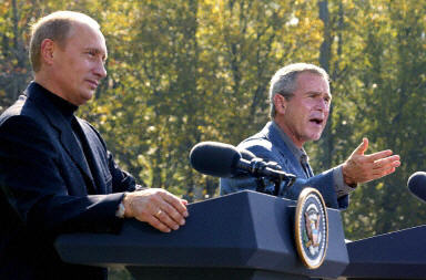 普京和布什兩人在華盛頓附近的戴維營舉行了一次兩天的會談。他們也談到了有關車臣地區(qū)的持續(xù)不斷的沖突。兩人形容自己為“對抗恐怖活動戰(zhàn)爭中的盟友”。