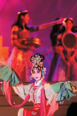 讓人驚奇的是,這個古老的埃及故事的結(jié)局和中國古老的愛情故事《梁!纷隽朔浅G擅畹募藿。即將被處死的拉達(dá)梅斯走進(jìn)墓穴,而美麗的阿依達(dá)也跟隨他一同走向歸宿。墓穴緩緩閉合,全場燈光瞬間熄滅,幾百支火把一起點(diǎn)亮,此時(shí)夜空中兩只巨大的蝴蝶和幾千只美麗的小蝴蝶翩翩起舞,而主人公幻化的“靈魂”從舞臺西側(cè)飛向東側(cè)。美麗的結(jié)尾,將成為人們永久的記憶。(張學(xué)軍)