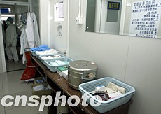 區(qū)疾控中心接報后,公衛(wèi)醫(yī)生穿好防護服,兵分兩路。有三位醫(yī)生拎起疫情處理箱,直奔了醫(yī)院,做流行病學(xué)調(diào)查以及取病原標本,他們用了半個小時就趕到了醫(yī)院。另一路去了病人的居住地,對他的居室進行消毒。此外疾控中心還通知了區(qū)里的專家小組前來再次會診,這個區(qū)內(nèi)的專家組有十五位專家,輪流值班時他們在各自的醫(yī)院內(nèi)待命。昨天正在值班的是北京中醫(yī)醫(yī)院和第六醫(yī)院的專家,他們也分別趕到協(xié)和醫(yī)院,認同協(xié)和醫(yī)院的診斷。于是醫(yī)院撥打120,要把病人轉(zhuǎn)往區(qū)內(nèi)的指定醫(yī)院。如果患者是確診SARS病人,則轉(zhuǎn)入市里的定點醫(yī)院。