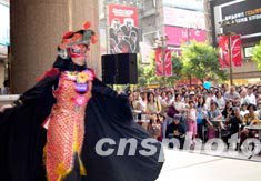 香港時(shí)代廣場(chǎng)10月1日舉辦文藝表演慶祝國(guó)慶節(jié),香港女藝人的“變臉”技藝,令觀眾大開眼界。中新社記者:洪少葵