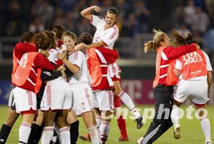 中國隊的攻擊能力令人頗為失望。在包括對加拿大隊的比賽中,中國隊的進攻組織得都還不錯,創(chuàng)造了不少得分機會,但大多被白白地浪費掉了。上屆杯賽上出盡風(fēng)頭的老將孫雯只打進一球,遺憾地與個人進球紀(jì)錄擦肩而過。