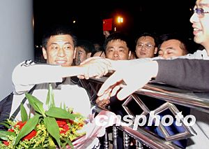 十月四日晚,剛剛抵達(dá)北京的中國女子足球隊(duì)主教練馬良行在首都國際機(jī)場受到球迷們的熱烈歡迎,中國女足雖然沒有完成進(jìn)軍前四的預(yù)定任務(wù),但她們在場上的拼搏精神依然得到球迷的認(rèn)可。中新社記者:武仲林