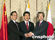溫家寶出席中日韓三國領(lǐng)導(dǎo)人會晤