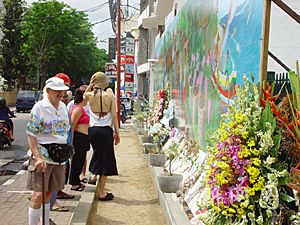 時(shí)隔一年,前來這里報(bào)道東盟系列峰會的本社記者踏訪爆炸案現(xiàn)場,追尋恐怖主義的罪惡,感受人們對和平的渴望。遠(yuǎn)遠(yuǎn)望去,在鱗次櫛比的商店旅館中間,有一片用木板和鐵柵欄圍起的空地,格外顯眼。當(dāng)記者的采訪車剛剛停下,一位身材壯實(shí)的警察即走上前來,用不太流利的英語向記者介紹爆炸發(fā)生時(shí)的慘狀。