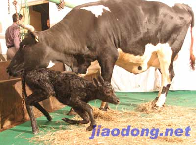今天凌晨,記者和科研人員一起,焦急地等待“蓓蓓”的降生。3時18分,在科研人員的努力下,克隆!拜磔怼苯K于來到了這個世界,母親黑白花奶!袄婊ā弊o(hù)犢情深,忽然發(fā)起牛威,不許眾人靠近,并用舌頭舔干“蓓蓓”的濕濕的黑色毛皮!拜磔怼遍_始睜開眼睛,怯生生地看著四周關(guān)心它安危的人們。凌晨4點左右,在母親的幫助和周圍人們的鼓勵下,“蓓蓓”終于顫悠悠的站了起來,并在母親的幫助下開始行走?蒲腥藛T費了好大的勁才遏制住了母親的牛勁,開始對剛降生的“蓓蓓”進(jìn)行科學(xué)測量。經(jīng)測量,“蓓蓓”體長66厘米,身高78厘米,胸圍81厘米,管圍11厘米,心律188次/分,體溫39攝氏度,體重33公斤,各項生理指標(biāo)正常。