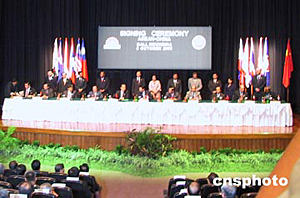 中新網(wǎng)巴厘島10月8日電(記者齊彬)中國外交部長李肇星八日在這里與東盟十國外長簽署文件,宣布中國正式加入《東南亞友好合作條約》,從而使中國成為東南亞地區(qū)以外第一個加入該條約的大國,中國國務院總理溫家寶與東盟十國領(lǐng)導人共同出席了簽字儀式。