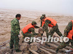 面對(duì)嚴(yán)峻形勢(shì),黃河防總科學(xué)調(diào)度小浪底、三門(mén)峽、故縣、陸渾水庫(kù),通過(guò)四庫(kù)聯(lián)調(diào),有效地削減了渭河5次洪水過(guò)程。但是由于黃河下游河道長(zhǎng)時(shí)間過(guò)水,局部河段河勢(shì)發(fā)生變化,導(dǎo)致下游控導(dǎo)工程出現(xiàn)大量險(xiǎn)情,特別是近年來(lái)在旱地上的新修工程。目前,蘭考至東明黃河大堤嚴(yán)重偎水,偎水長(zhǎng)度近50公里。尤其是山東東明河段大堤1/2至2/3被洪水淹沒(méi),洪水最深達(dá)6米,偎水深度創(chuàng)歷史最高,情況十分危急。