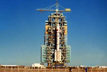 記者到達發(fā)射中心的第二天,即10月11日,正巧趕上了“神舟五號”載人飛船和運載飛船的長征—2F火箭合體后的轉(zhuǎn)場,這是載人飛船發(fā)射前箭船組合體的最后一次亮相。發(fā)射中心里能來這里的人都來了,這是非常難得的機會。載人航天工程的管理是非常嚴的,沒有衛(wèi)星發(fā)射中心發(fā)的證件,任何人都進不了“東方航天城”的門。即使在航天城里,要進入航天工作場所也必須持特別證件。臨近發(fā)射了,中心管得更嚴。據(jù)透露,從某天開始,發(fā)射中心將實行戒嚴,直到發(fā)射成功為止。