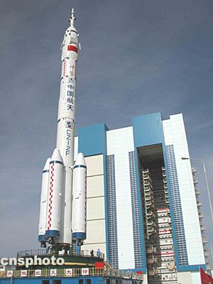“神舟”五號載人飛船船箭塔組合體轉(zhuǎn)運途中