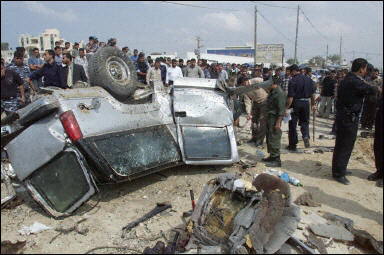 在美國(guó)否決了聯(lián)合國(guó)譴責(zé)以色列修建“隔離墻”的提議案后,以阿拉法特為首的巴勒斯坦方面首次因?qū)γ揽植佬袆?dòng)遭到譴責(zé)。