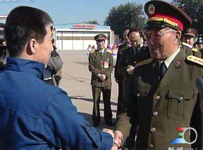 鮮花、掌聲和歡快的迎賓曲迎接這位中國航天英雄的到來。九時(shí)五十二分,航天員專機(jī)抵達(dá)北京西郊機(jī)場,勝利完成中國首次載人航天飛行任務(wù)的航天員楊利偉健步走下飛機(jī)。在機(jī)場迎接的曹剛川立即握住了這位英雄的手,并代表中共中央、國務(wù)院、中央軍委,向楊利偉表示熱烈的歡迎!曹剛川說,你是中華民族第一位乘坐中國自行設(shè)計(jì)制造的飛船遨游太空的航天英雄,你的成功飛行,實(shí)現(xiàn)了中華民族的千年飛天夢想,向全世界展示了中國人民的偉大創(chuàng)造力和自強(qiáng)不息、勇攀高峰的精神風(fēng)貌。這既是你個(gè)人的光榮,也是國家和人民的榮耀和自豪。